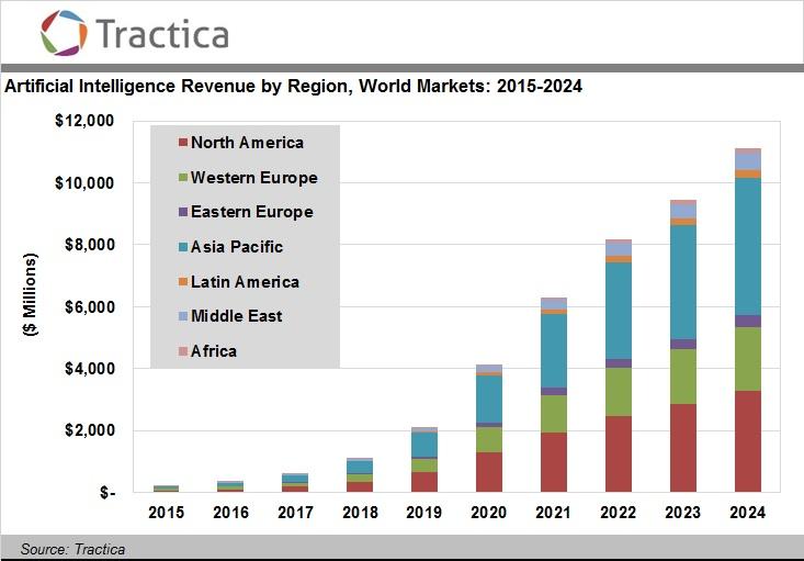 Figure: Region-wise revenue generation and growth opportunity expected due to AI in years to come